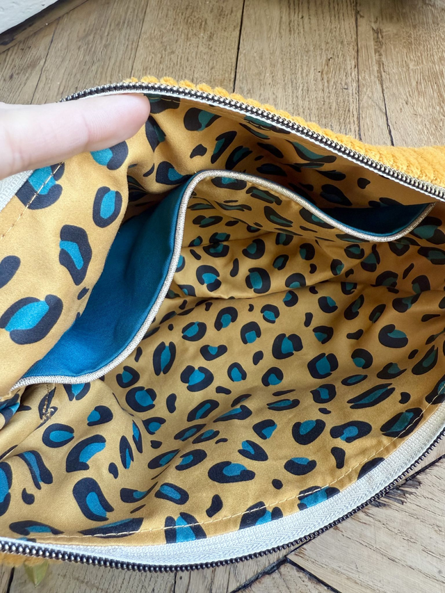 Sac demi lune en velours côtelé en coton OEKO-TEX, et intérieur en coton BIO aux motifs Poëco. Une poche zippée à l'extérieure et 2 poches ouvertes. Une sangle en coton réglable qui peut se détacher des deux cotés.