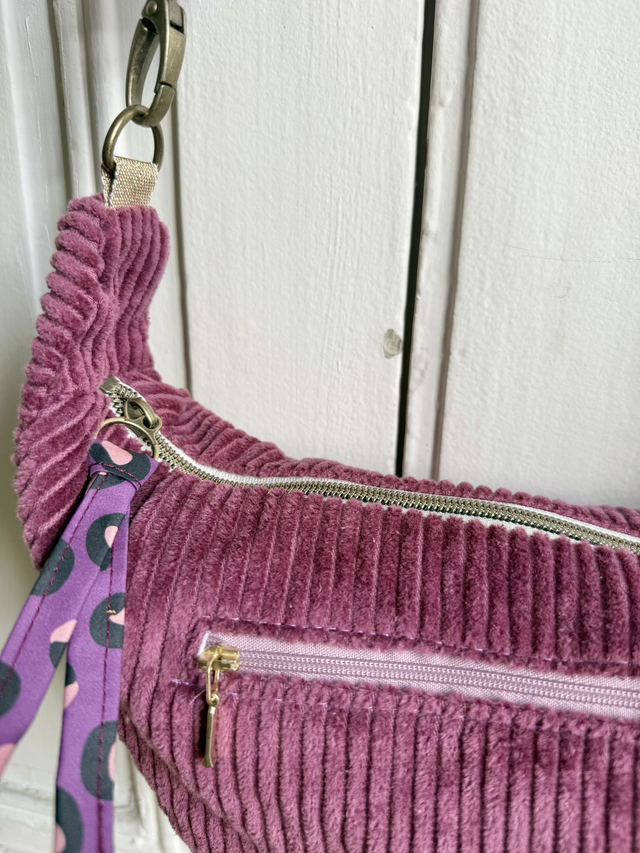 Sac Demi Lune velours côtelé - PRUNE
