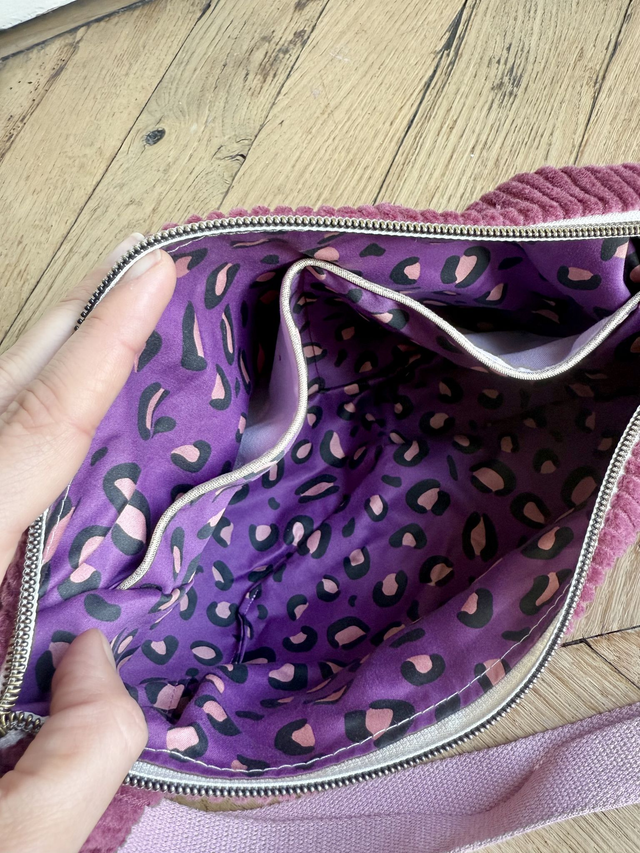 Sac demi lune en velours côtelé en coton OEKO-TEX, et intérieur en coton BIO aux motifs Poëco. Une poche zippée à l'extérieure et 2 poches ouvertes. Une sangle en coton réglable qui peut se détacher des deux cotés.