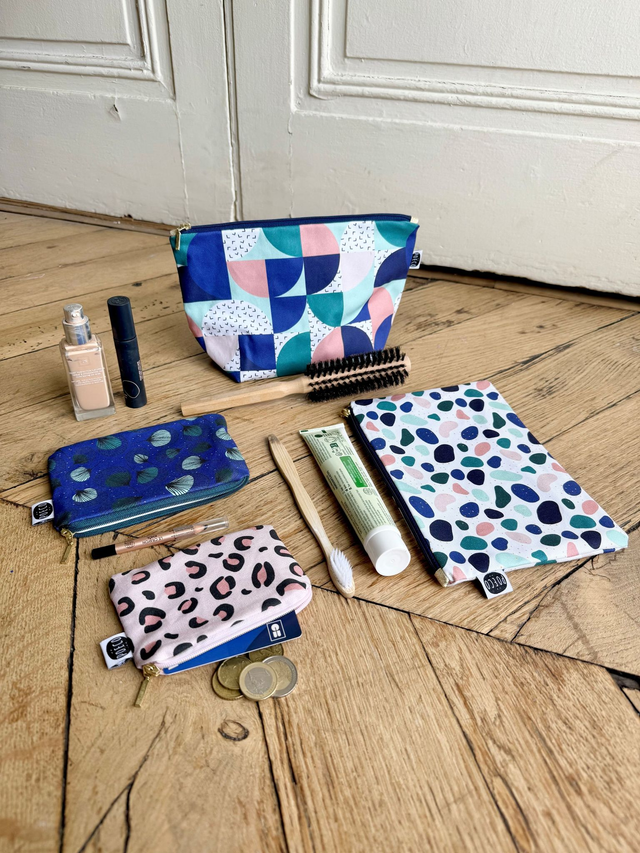 Trousse plates en tissu ( Motifs Poëco imprimés sur de la toile de coton BIO.) et intérieur imperméable (certifié OEKO-TEX et contact alimentaire)